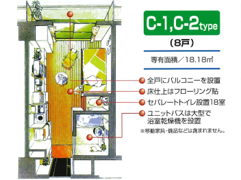 ・セパレートトイレ(B-1、Dタイプ8室はユニット)